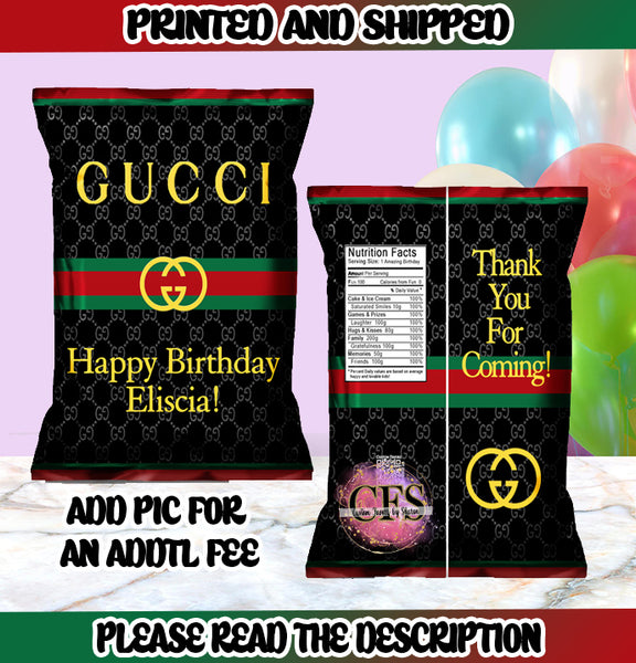 These Designer Black Gucci inspired chip bags can be filled with chips, cookies, popcorn, candy, toys, and more!