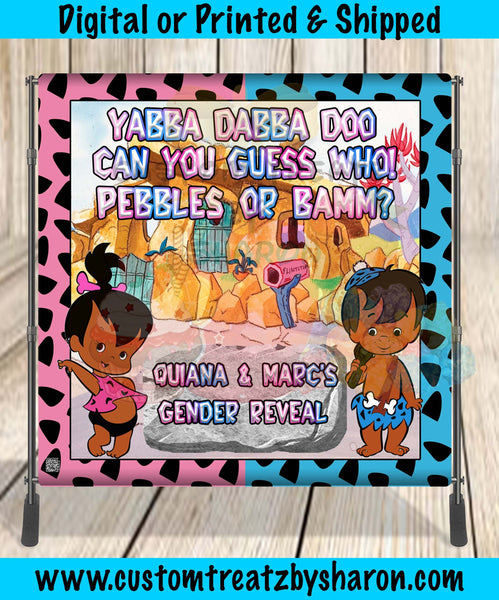 African American Pebbles and Bamm Gender Reveal Backdrop