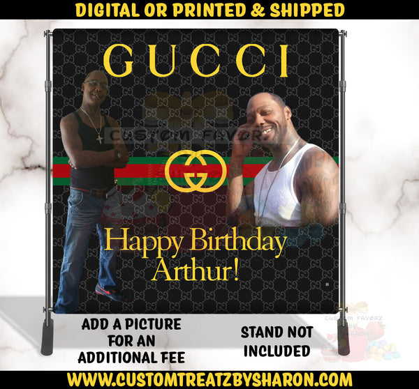 This Black Gucci Banner is sized according to your choice and used for step & repeats, scene setters or photo booths.