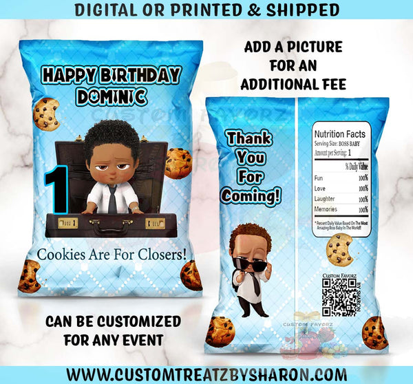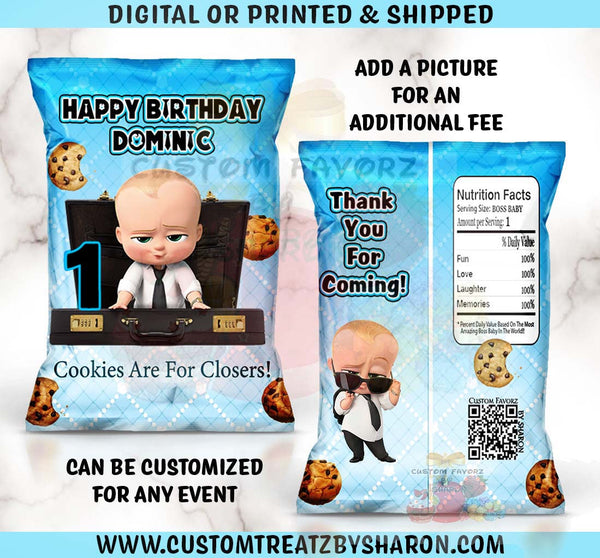 These Boss Baby Boy chip bags can be filled with chips, cookies, popcorn, candy, toys, and more!