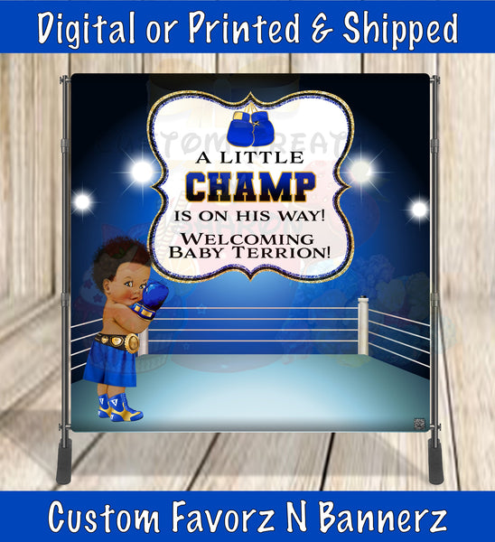 A Little Champ Baby Shower Backdrop. (ROYAL BLUE)