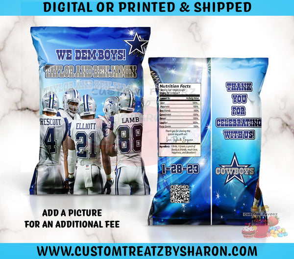 These Custom Dallas Cowboys chip bags can be filled with chips, cookies, popcorn, candy, toys, and more!