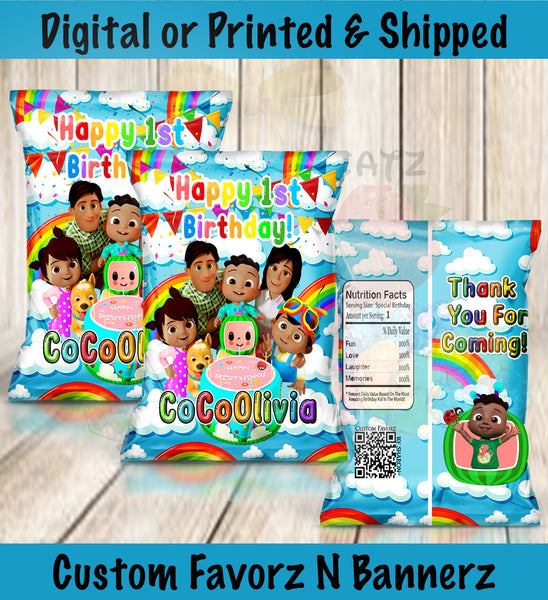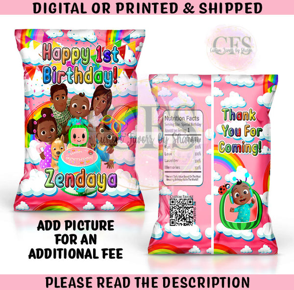 These African American Cocomelon inspired chip bags can be filled with chips, cookies, popcorn, candy, toys, and more!