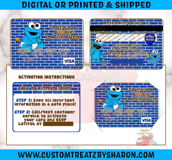 COOKIE MONSTER BABY SHOWER CREDIT CARD INVITE