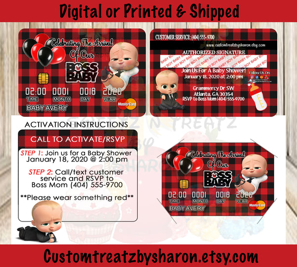African American or Caucasian Boss Baby Boy Baby Shower Credit Card Invites (15)