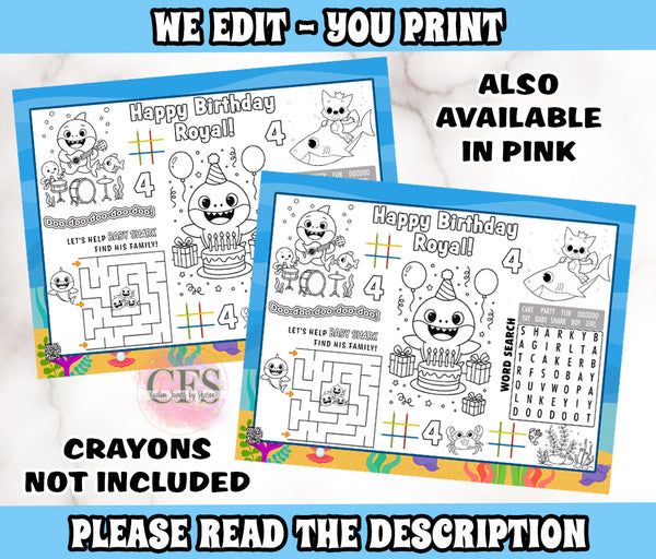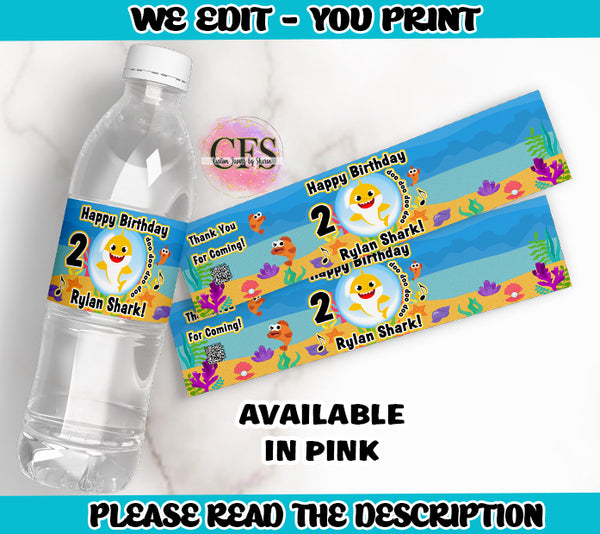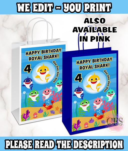 Baby Shark Digital Bundle (BLUE) containing 5 digital files, customized with your child's information. (NO SUBSTITUTIONS. FAVORS AS SHOWN ON THE IMAGE AND NO DESIGN CHANGES)
