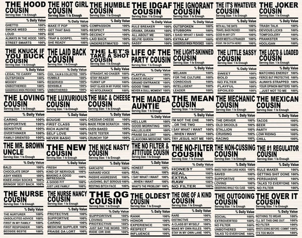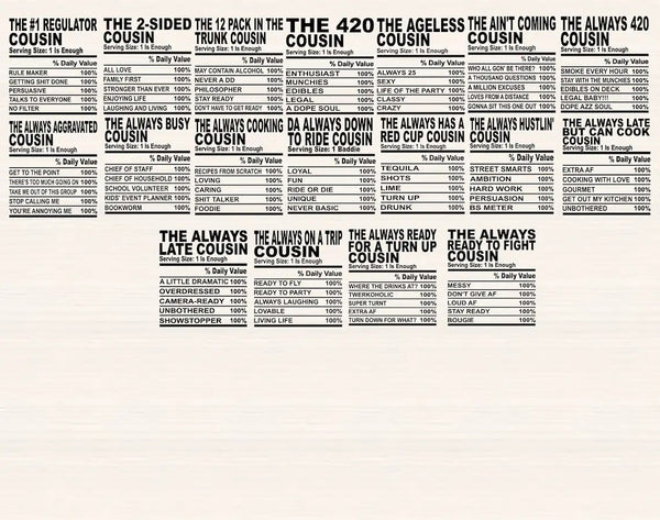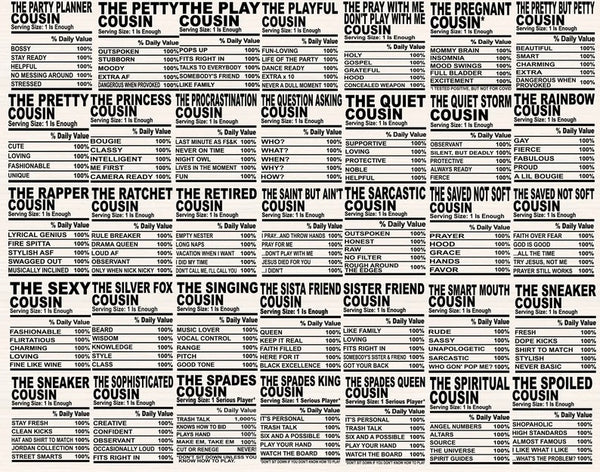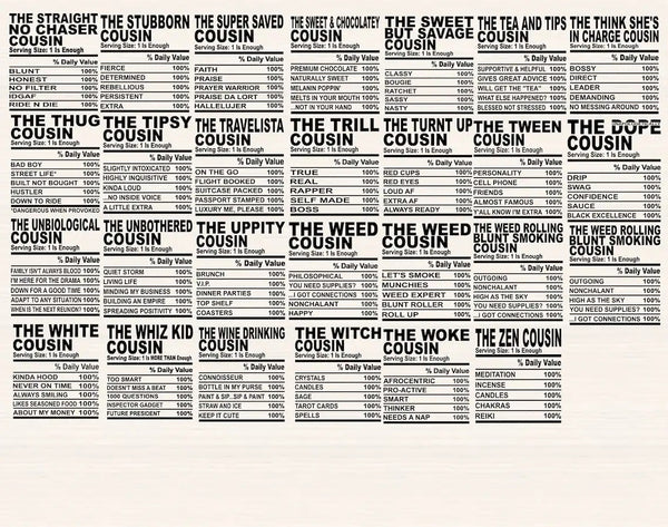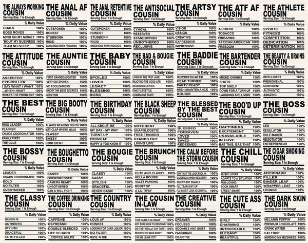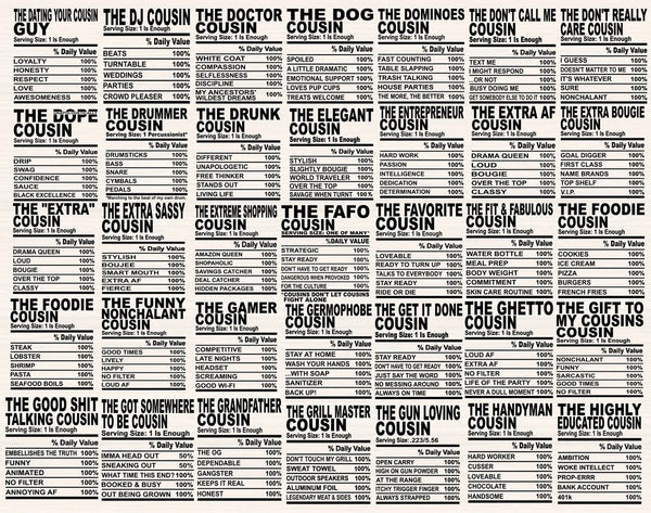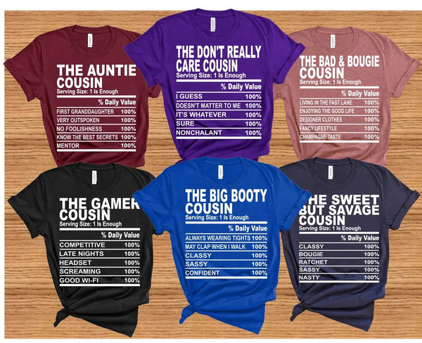 NUTRITION FACTS COUSIN/FAMILY TEES