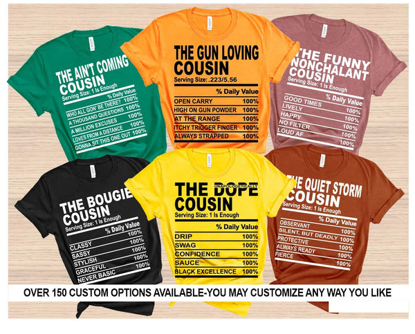 These matching family shirts are great for family and/or cousin reunions, cookouts, color party reveals, family group pictures, reunions...