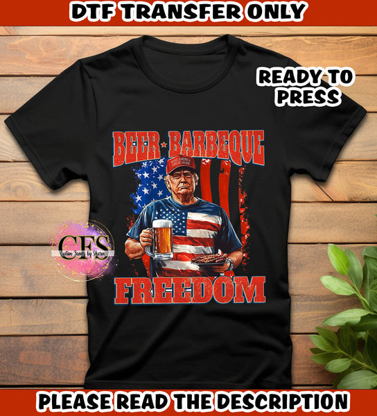 DTF Transfer, Beer, BBQ, & Freedom, 4th of July