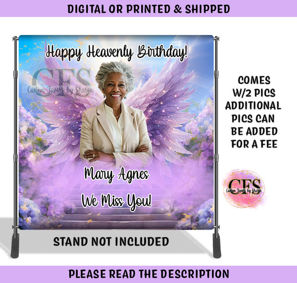 This Funeral Banner is sized according to your choice and used for step & repeats, scene setters or photo booths.