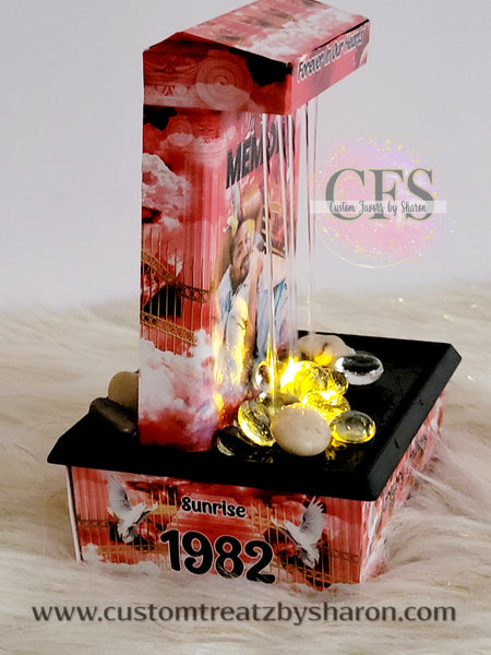 Introducing our Mini Tabletop Fountain Waterfall Keepsake. A beautiful and unique way to remember your loved one. With its serene and calming waterfall design, this keepsake brings peace and comfort to any space. Made with high-quality materials and expert craftsmanship, it is a lasting tribute to your loved one's memory.