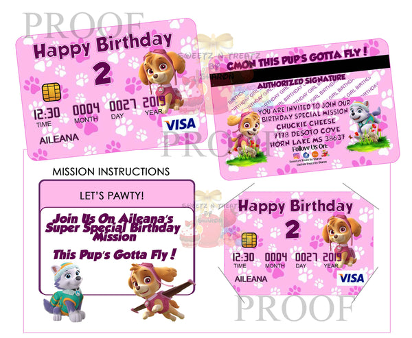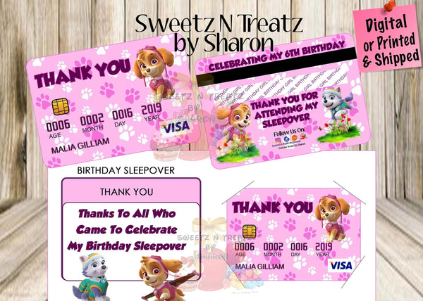 PAW PATROL GIRL CREDIT CARD INVITES AND/OR THANK YOU CARDS (15)