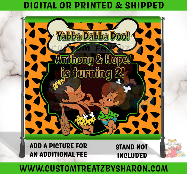 African American Pebbles and Bamm Bamm Birthday Backdrop