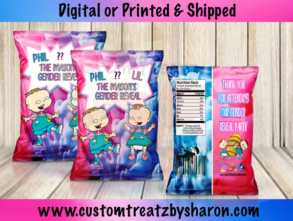 Phil & Lil Rugrats Gender Reveal Chip Bags - 1 dozen (12)