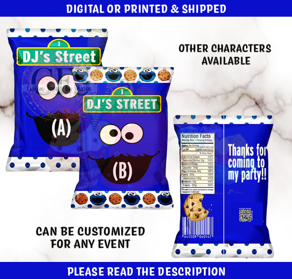 Cookie Monster of Sesame Street Inspired Chip Bags - 1 dozen (12) Custom Chip Bags