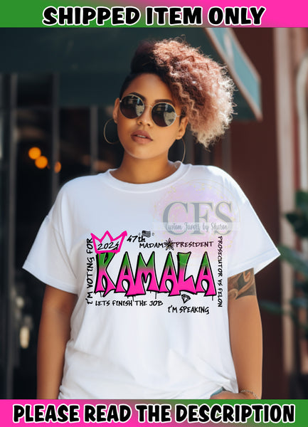 This T-Shirt would be great to support the Presidential Candidate Kamala Harris. It would go great when attending conventions, rallies, the presidential elections and more! Let's show our support for our Vice President!
