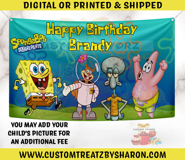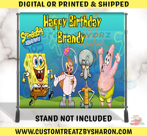 This Spongebob banner is available in different sizes and used for step & repeats, scene setters or photo booths. Please, let me know if you need a different size than what is listed.