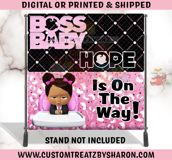 This African American Boss Baby Girl Banner is sized according to your choice and used for step & repeats, scene setters or photo booths.