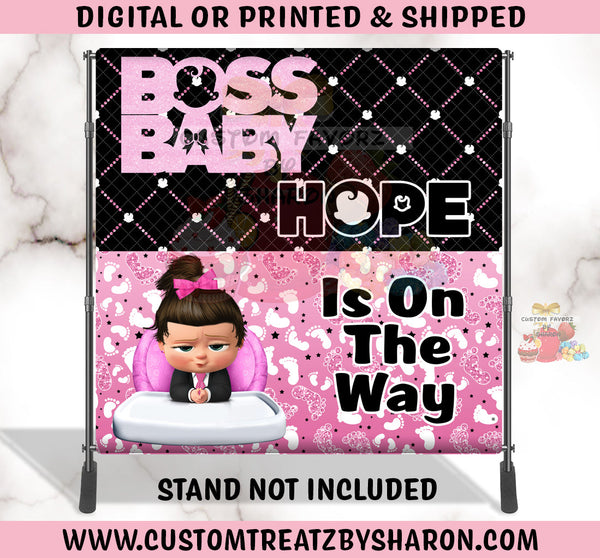 This Caucasian Boss Baby Girl Banner is sized according to your choice and used for step & repeats, scene setters or photo booths.
