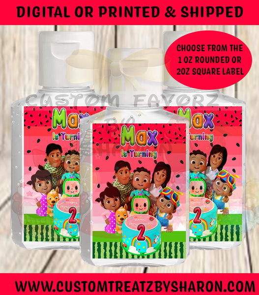African American Cocomelon Watermelon Sanitizer Labels - (12) 2oz Labels