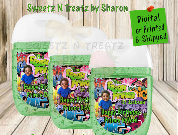 Fresh Prince or Fresh Princess Sanitizer Labels - 10 Count 1 oz Personalized Sanitizer Labels will be the perfect addition for any party.