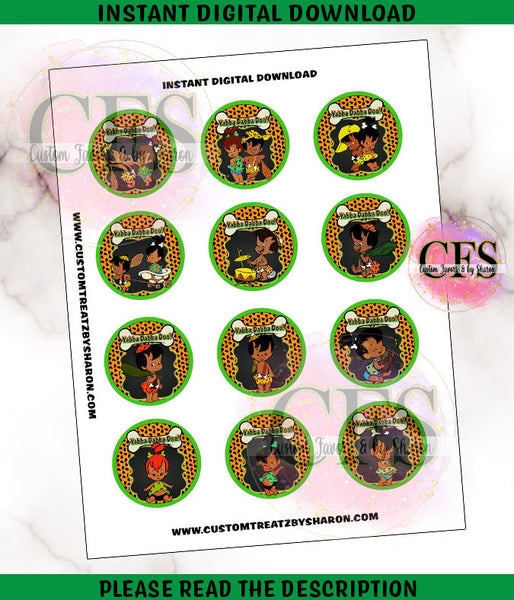 African American Pebbles & Bamm Cupcake Toppers - Instant Download