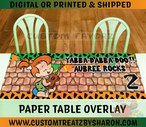 Pebbles Flintstones Paper Table Overlay, Birthday Party Decor, Graduations or any Special Event.