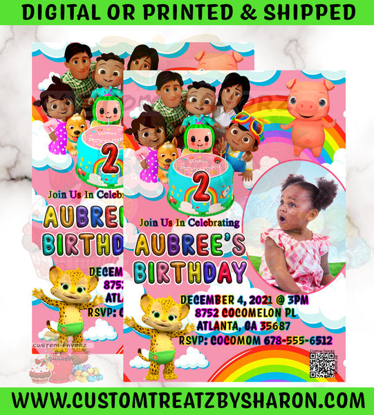 African American Cocomelon 4X6 or 5X7 Printable Invite (PINK)
