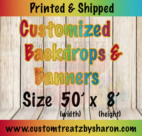 This listing is for a customized designed, any sized banner from 50' (width) X 8' (height) and used for step & repeats, scene setters or photo booths. Please, let me know if you need another size.