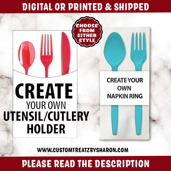 These custom designed napkin holders/wraps will add that extra special touch to your party/event. The wraps can be personalized with person(s) name and details. Please be sure to read the entire description before purchasing.