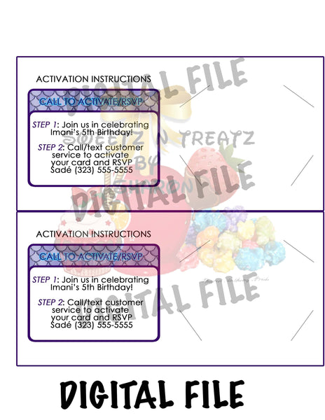 **FOR BEST RESULTS CHOOSE GLOSSY BROCHURE PAPER FOR THE INVITATION CARDS AND THE ACTIVATION SLIP USES REGULAR CARD STOCK (AT LEAST 80 LB IS THE SUGGESTION)***