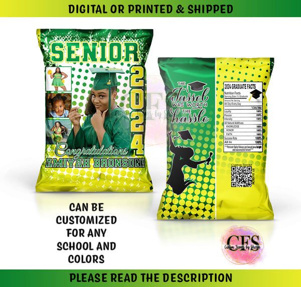 Custom Graduation Chip Bags - 1 dozen (12) Custom Chip Bags